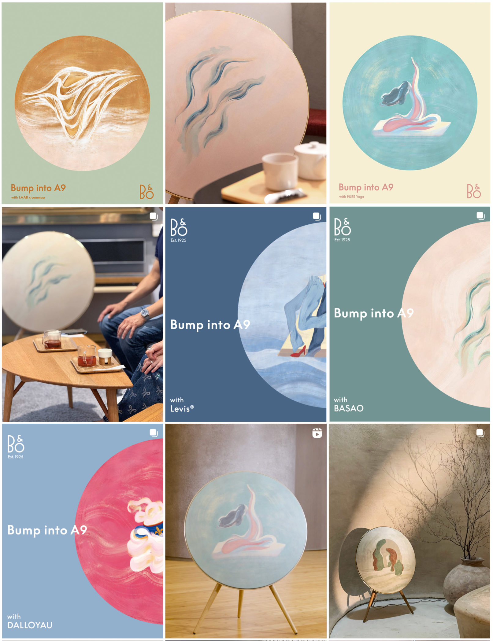 In this visionary Bump into A9 campaign for Bang & Olufsen, a collaboration with six artistic brands—Basao Tea, Dalloyau, LAAB, Commaa, Levi’s, Pure Yoga, and Soul Element was orchestrated to celebrate the intersection of creativity and sound. Each partnership brought a unique perspective, aligning B&O’s iconic audio technology with Hong Kong’s vibrant cultural landscape, weaving a tapestry of stories that showcased the Beosound A9 as more than a speaker—a catalyst for artistic expression.