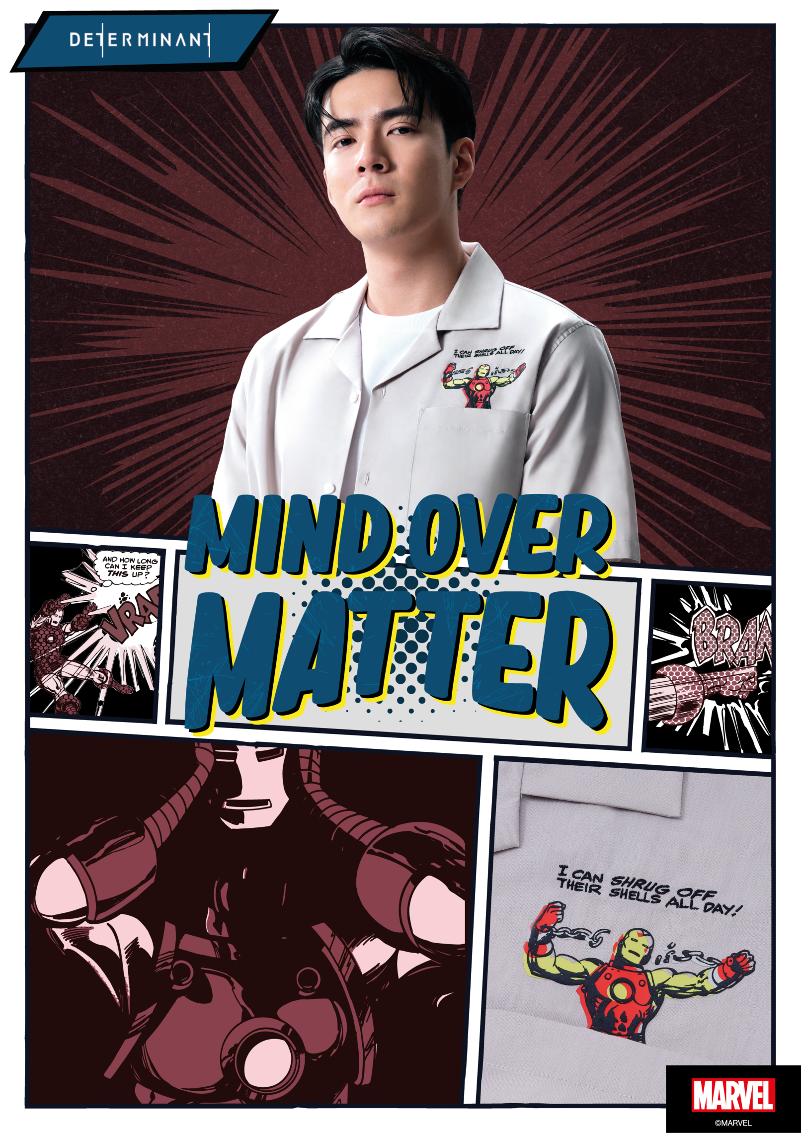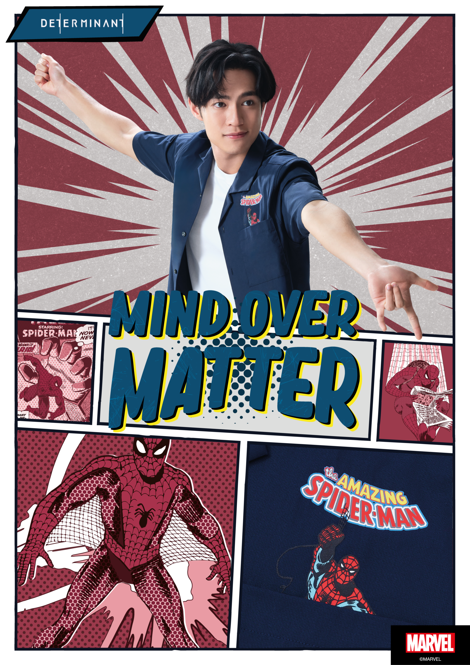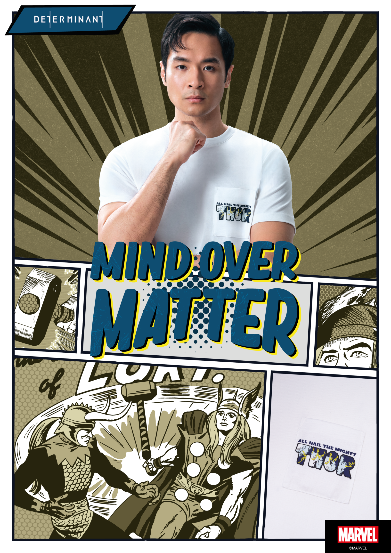 DETERMINANT’s “Mind Over Matter” collection draws inspiration from Marvel comics and explores the complex inner world of superheroes. The key visual, created by team Feva, features a photoshoot of four gentlemen in their #Hulk, #Ironman, #Spider-man, and #Thor outfits, reflecting their urban lives’ mental struggles that resemble the comic characters. The collection’s theme emphasizes that real heroism is achieved by embracing one’s authentic self.