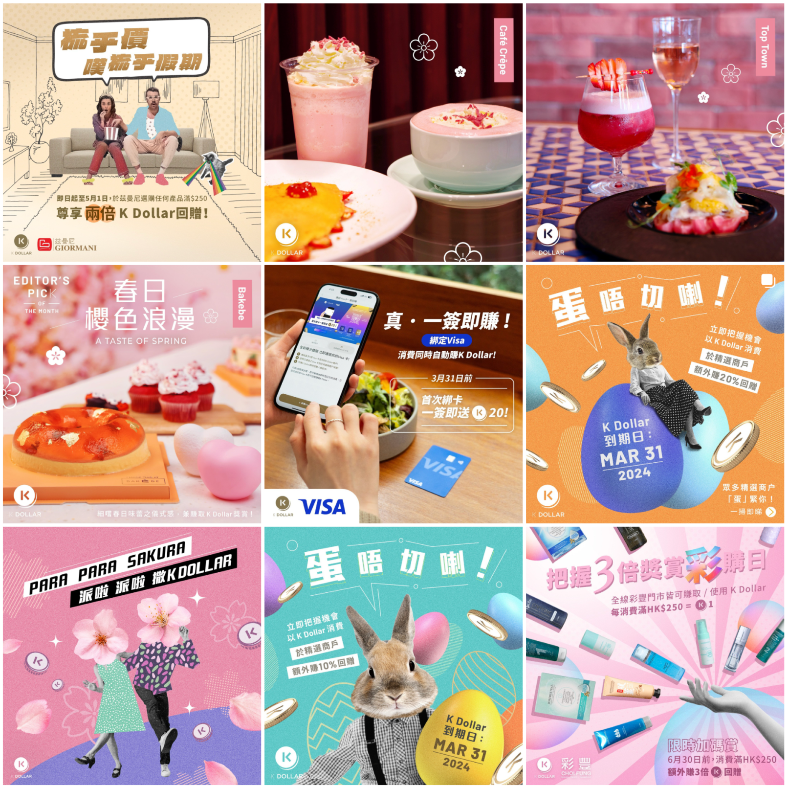 K Dollar is a loyalty reward program started by K11, New World Development and Chow Tai Fook. People earn K Dollar as they spend at their designated locations and use as instant cash for future purchases. As the social media agency, team Feva combines word puns and sophisticated illustrations to create captivating content that ignites engagement and leaves fans yearning for more.