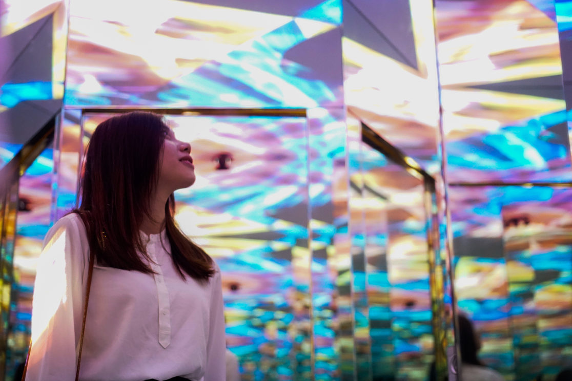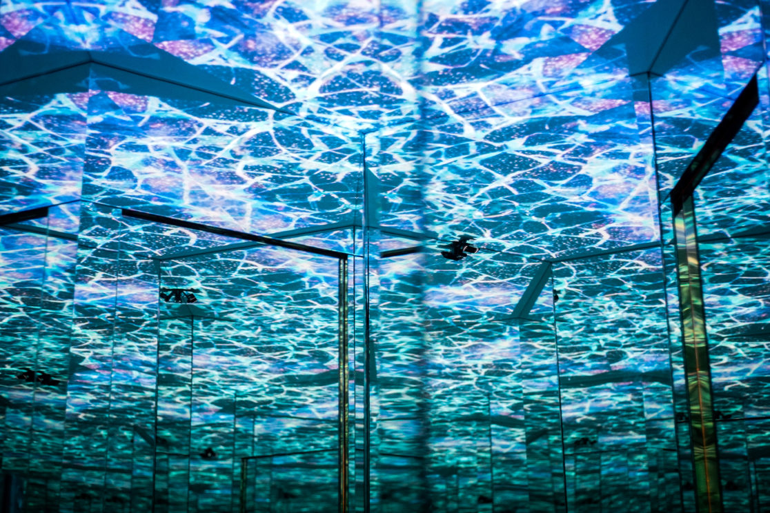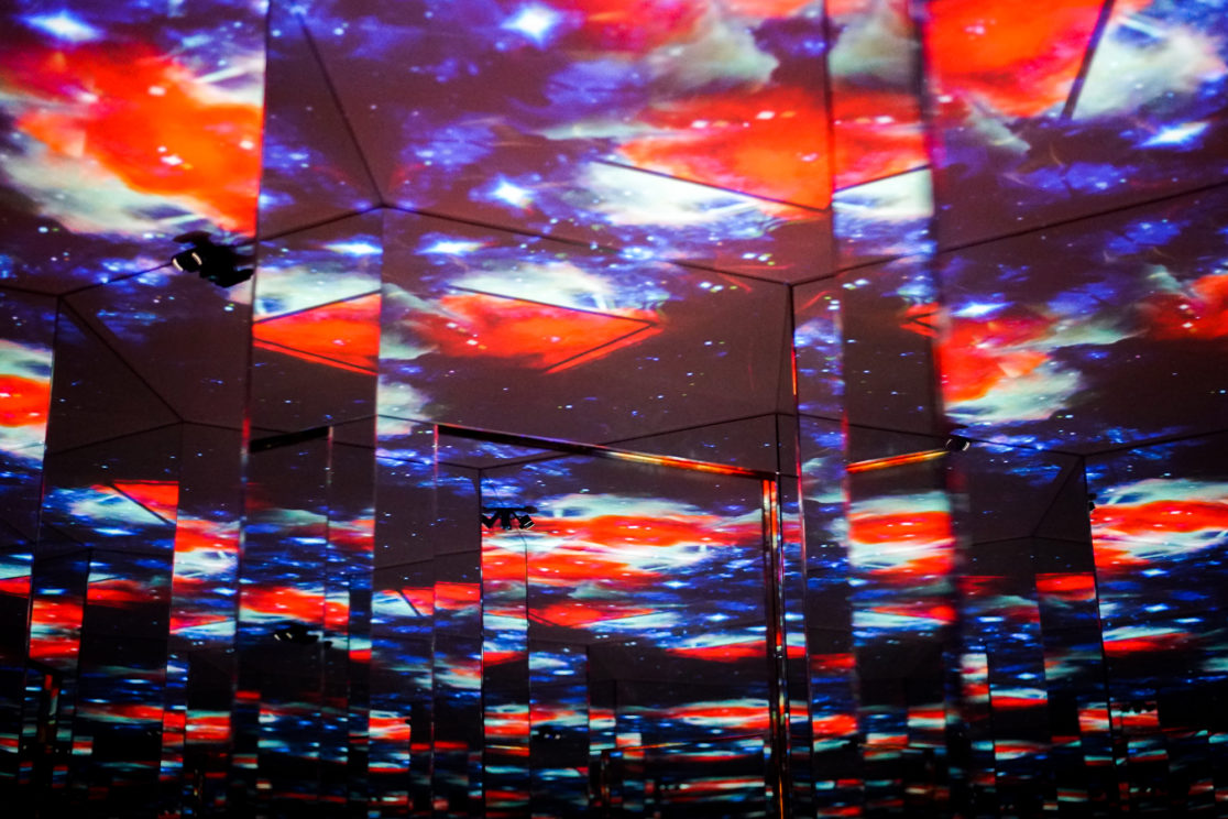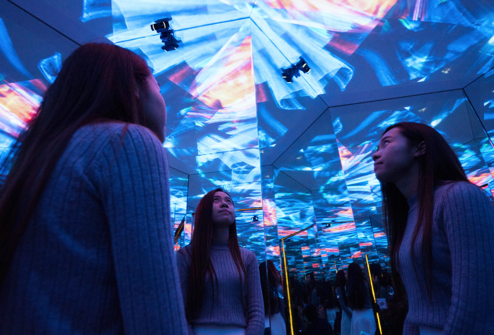 Inside the hexagonal structures are mirror panels that reflect 3D mapping, creating a stunning kaleidoscope effect, which also allows cameras to capture users’ faces being blended into the motion graphics background.