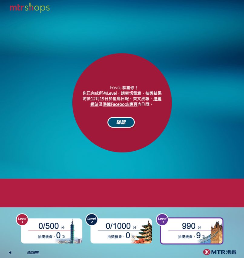Co-created with the MTR Malls team, the web game “MTR SHOPS 猜中商品,賞你飛!” aimed to engage the public while offering the incentive of winning a pair of round-trip economy class air-tickets to 3 different destinations – Taipei, Seoul, and London. The game was not only a resounding success, it received the Bronze award in The Marketing Excellence Awards – Excellence in Gaming.