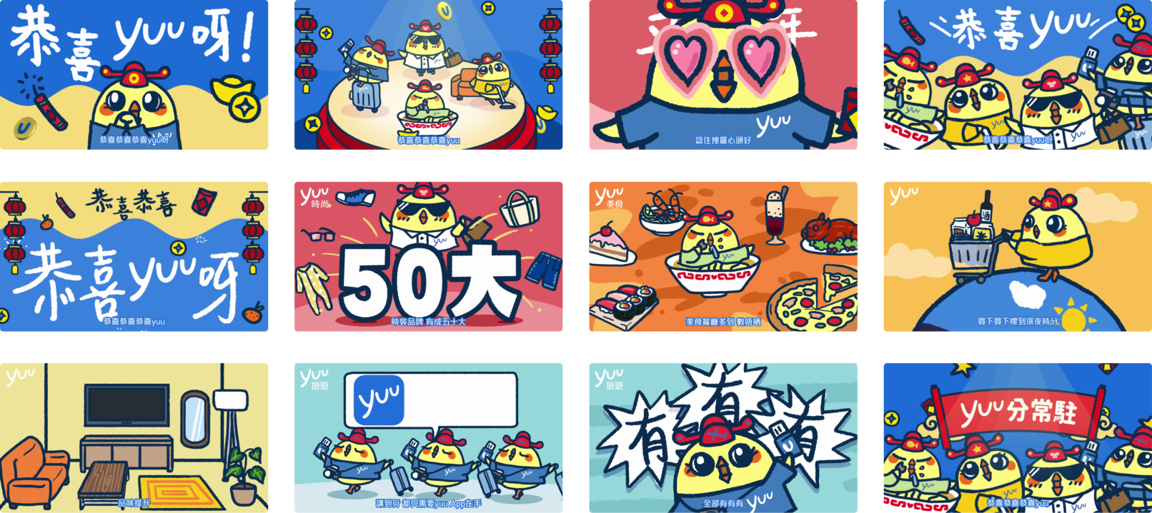 CNY is the biggest celebration of the year when people participate in family gatherings, enjoy festive food, and exchange gifts. To celebrate CNY with the fans from Yuu, which has been providing extra savings to everyone in the City, Yuu gave us four super cute chickens to be featured in a cartoon music video written by Team Feva based on the traditional CNY song 恭喜恭喜. Representing fashion (潮流尖啄雞), dining (流晒口水雞), home essentials (精明管家雞), and travel (百厭走地雞), the video along with funny social media content aim to educate the audience on how to earn Yuu Points in various aspects of daily life and make the most of the spring festival.